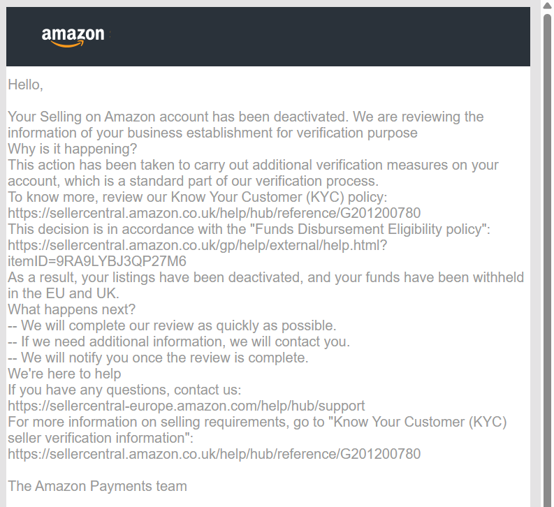 When your Amazon account was deactivated right after updating company director or nationality details, it was almost certainly triggered by Amazon’s automated KYC (Know Your Customer) compliance system.