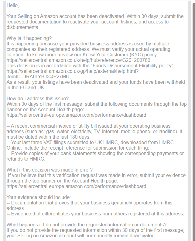 It is also worth double-checking that all documents match Seller Central details exactly, including name formatting, addresses, and legal entity information, because small inconsistencies between ID, bank statements, company records, and Seller Central are one of the most common reasons KYC reviews fail or stall. While the situation is understandably stressful, patient follow-up through the original notification channel tends to work better than constant new submissions, and if you have access to an account manager or similar internal contact, that can sometimes help push the review forward.