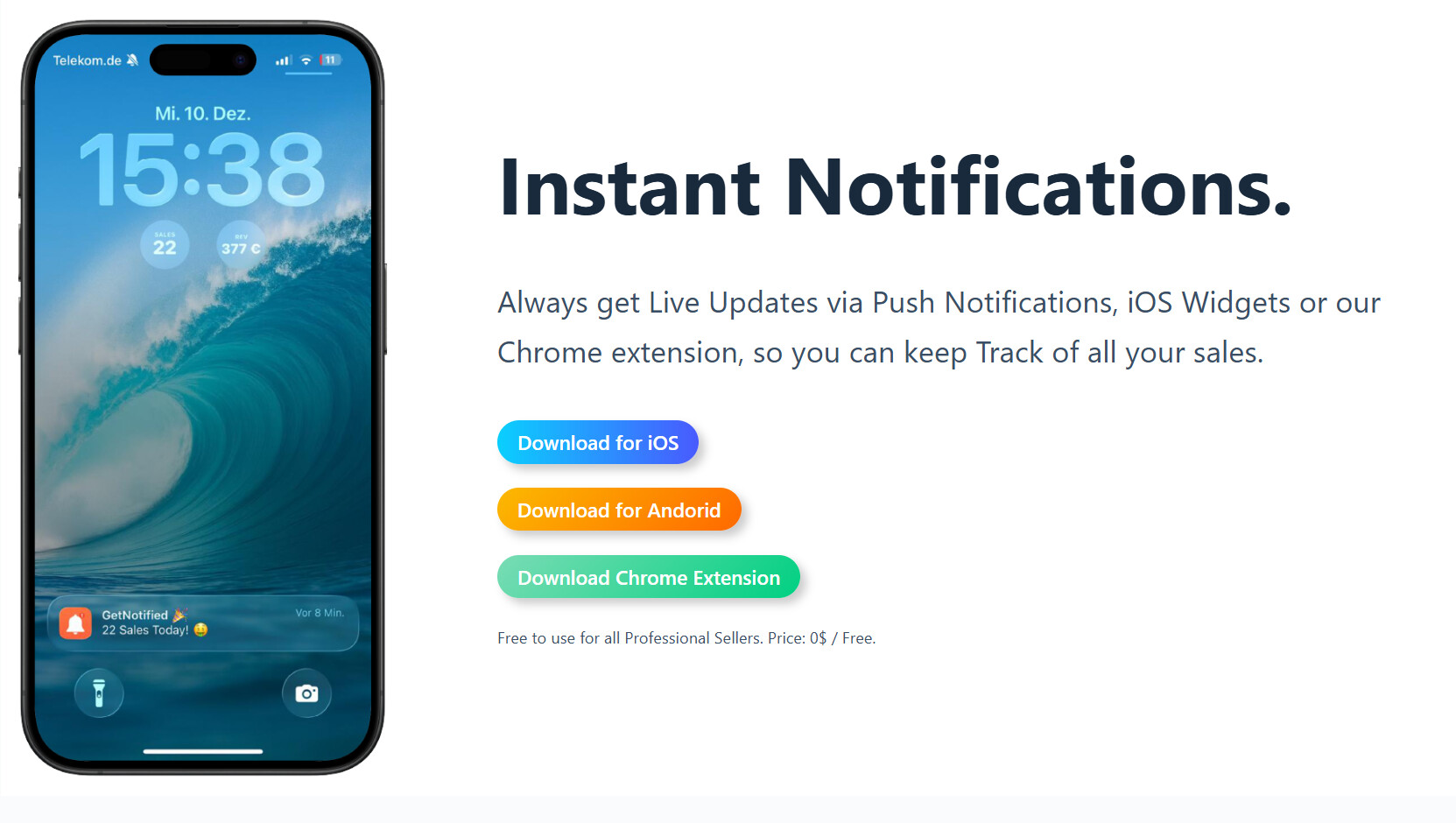 Since I coulnd’t find a solution, I spent the last few weekends building my own. It connects directly to the Amazon API and gives a Notification as well as a “Ka-ching” sound the second an order goes pending. I also added iOS widgets so I don’t have to keep opening the app to check my numbers.