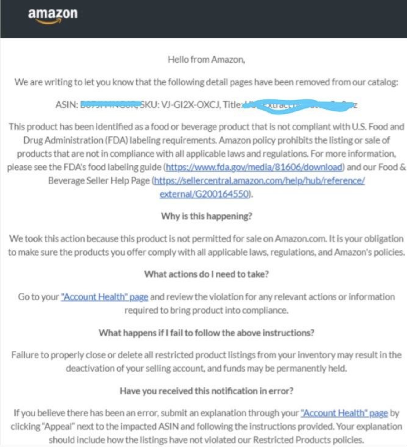 If the product genuinely falls under restricted categories, your best move is to delete the listing completely and acknowledge the violation in Account Health, which usually prevents it from escalating. If you believe it’s a false flag, you can open a case with Seller Support and provide documentation or a brief appeal explaining why the product isn’t restricted, though keep it concise and professional.