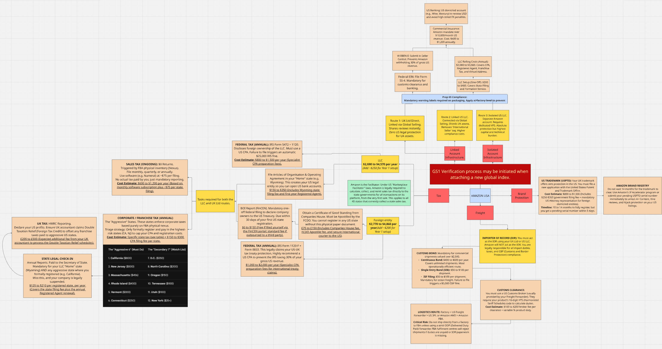 Hello, We’re looking at going into FBA USA. I have created a little mind map of all the setup for this.