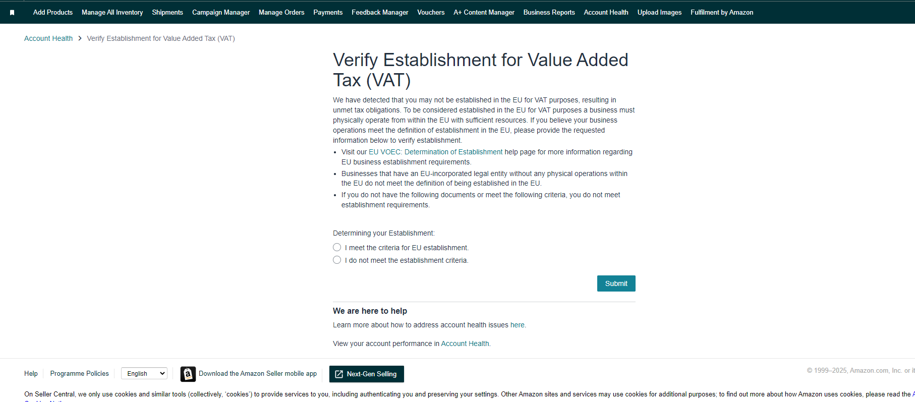 The DAC7 questionnaire is really easy to complete, regardless of your entity. If there are any tax concerns, Amazon will withhold the disbursements and ask for repayment (the seller will need to appeal this).